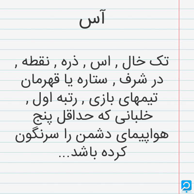 تک خال , اس , ذره , نقطه , در شرف , ستاره یا قهرمان تیمهای بازی , رتبه اول , خلبانی که حداقل پنج هواپیمای دشمن را سرنگون کرده باشد