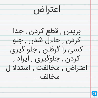 بریدن , قطع کردن , جدا کردن , حاءل شدن , جلو کسی را گرفتن , جلو گیری کردن , جلوگیری , ایراد , اعتراض , مخالفت , استدلا ل مخالف