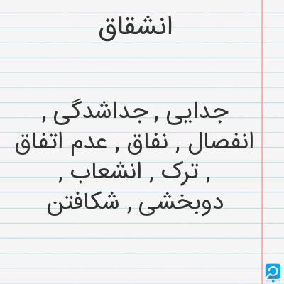 جدایی , جداشدگی , انفصال , نفاق , عدم اتفاق , ترک , انشعاب , دوبخشی , شکافتن