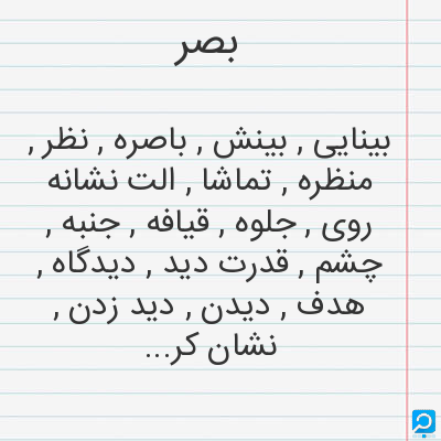 بینایی , بینش , باصره , نظر , منظره , تماشا , الت نشانه روی , جلوه , قیافه , جنبه , چشم , قدرت دید , دیدگاه , هدف , دیدن , دید زدن , نشان کردن , بازرسی کردن