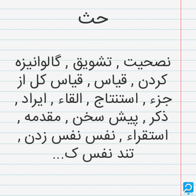 نصحیت , تشویق , گالوانیزه کردن , قیاس , قیاس کل از جزء , استنتاج , القاء , ایراد , ذکر , پیش سخن , مقدمه , استقراء , نفس نفس زدن , تند نفس کشیدن , دم کشیدن , ضربان داشتن (قلب و غیره) , ضربان , تپش