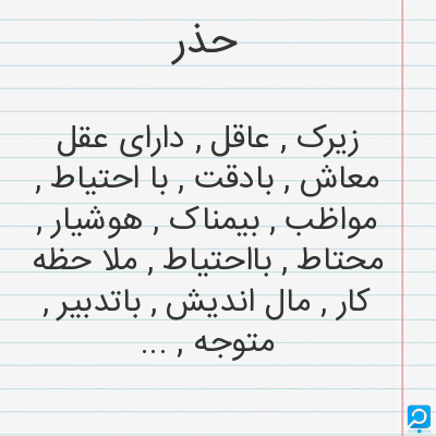 زیرک , عاقل , دارای عقل معاش , بادقت , با احتیاط , مواظب , بیمناک , هوشیار , محتاط , بااحتیاط , ملا حظه کار , مال اندیش , باتدبیر , متوجه , هشدار دادن , اگاه کردن , اخطار کردن به , تذکر دادن , بسیار محتاط , با ملا حظه , هشیار