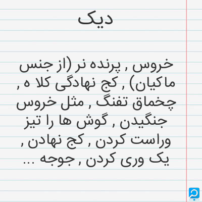 خروس , پرنده نر (از جنس ماکیان) , کج نهادگی کلا ه , چخماق تفنگ , مثل خروس جنگیدن , گوش ها را تیز وراست کردن , کج نهادن , یک وری کردن , جوجه خروس , ادم ستیزه جو