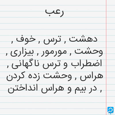 دهشت , ترس , خوف , وحشت , مورمور , بیزاری , اضطراب و ترس ناگهانی , هراس , وحشت زده کردن , در بیم و هراس انداختن