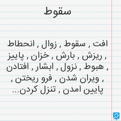 افت , سقوط , زوال , انحطاط , ریزش , بارش , خزان , پاییز , هبوط , نزول , ابشار , افتادن , ویران شدن , فرو ریختن , پایین امدن , تنزل کردن