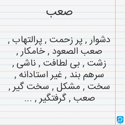 دشوار , پر زحمت , پرالتهاب , صعب الصعود , خامکار , زشت , بی لطافت , ناشی , سرهم بند , غیر استادانه , سخت , مشکل , سخت گیر , صعب , گرفتگیر , باریک بین , مشکل پسند , بیزار , داد وبیداد کن (برای چیزهای جزءی) , ایراد گیر