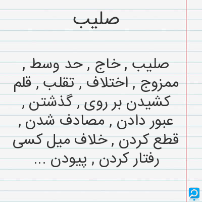 صلیب , خاج , حد وسط , ممزوج , اختلاف , تقلب , قلم کشیدن بر روی , گذشتن , عبور دادن , مصادف شدن , قطع کردن , خلاف میل کسی رفتار کردن , پیودن زدن