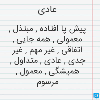 پیش پا افتاده , مبتذل , معمولی , همه جایی , اتفاقی , غیر مهم , غیر جدی , عادی , متداول , همیشگی , معمول , مرسوم