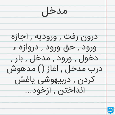 درون رفت , ورودیه , اجازه ورود , حق ورود , دروازه ء دخول , ورود , مدخل , بار , درب مدخل , اغاز () مدهوش کردن , دربیهوشی یاغش انداختن , ازخودبیخودکردن , زیادشیفته کردن , کریدور , تالا ر ورودی