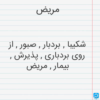 شکیبا , بردبار , صبور , از روی بردباری , پذیرش , بیمار , مریض