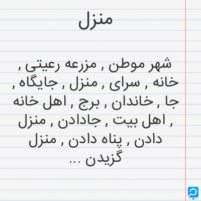 شهر موطن , مزرعه رعیتی , خانه , سرای , منزل , جایگاه , جا , خاندان , برج , اهل خانه , اهل بیت , جادادن , منزل دادن , پناه دادن , منزل گزیدن , خانه نشین شدن