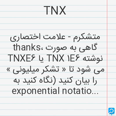 متشکرم - علامت اختصاری thanks، گاهی به صورت TNXE6 یا TNX 1E6 نوشته می شود تا « تشکر میلیونی » را بیان کنید (نگاه کنید به exponential notation).