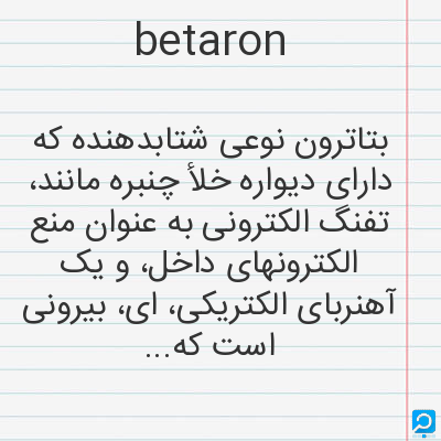 بتاترون نوعی شتابدهنده که دارای دیواره خلأ چنبره مانند، تفنگ الکترونی به عنوان منع الکترونهای داخل، و یک آهنربای الکتریکی، ای، بیرونی است که خطوط نیروی مغناطیسی آ« به صورت عمودی از چنبره می گذرد. با حرکت الکترونهای گسیل شده در مسیر دایره ای اطراف چنبره، تغییرات سریع میدان مغناطیسی پیوسته ی شتاب آنها را افزایش میدهد. در نهایت، باریکه ی الکترونی به وجود آمده، از طریق یک پنجره به بیرون منحرف می شود و مستقیماُ به عنوان پرتو بتا و یا با هدایت به سوی یک هدف برای تولید پرتوهای ایکس پر انرژی استفاده می شود.