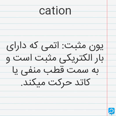 یون مثبت: اتمی که دارای بار الکتریکی مثبت است و به سمت قطب منفی یا کاتد حرکت میکند.