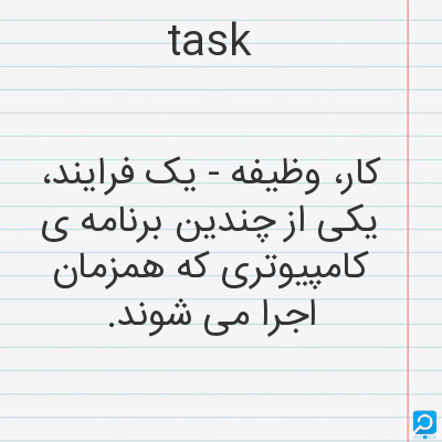 کار، وظیفه - یک فرایند، یکی از چندین برنامه ی کامپیوتری که همزمان اجرا می شوند.