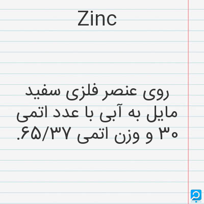 روی عنصر فلزی سفید مایل به آبی با عدد اتمی 30 و وزن اتمی 65/37.
