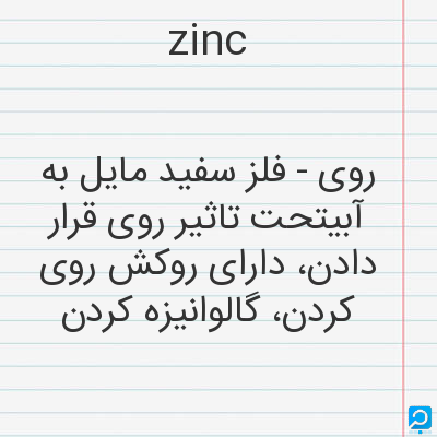 روى - فلز سفید مایل به آبیتحت تاثیر روى قرار دادن، داراى روکش روى کردن، گالوانیزه کردن