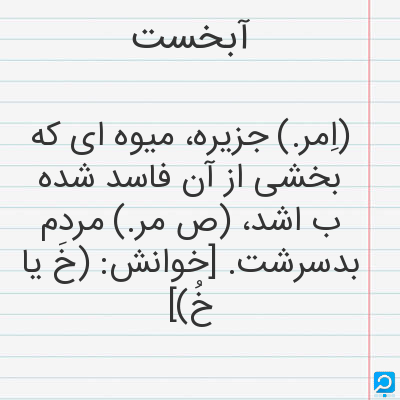 آبخست در فرهنگ لغات ها (دهخدا،معین و ... ) + سایر منابع اطلاعاتی