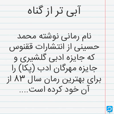 نام رمانی نوشته محمد حسینی از انتشارات ققنوس که جایزه ادبی گلشیری و جایزه مهرگان ادب (پکا) را برای بهترین رمان سال 83 از آن خود کرده است.