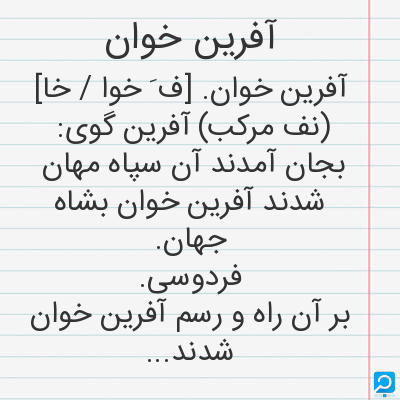 آفرین خوان در فرهنگ لغات ها (دهخدا،معین و ... ) + سایر منابع اطلاعاتی
