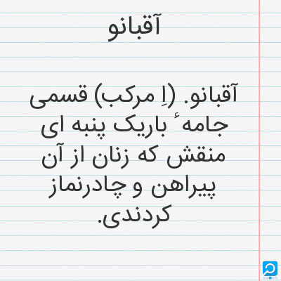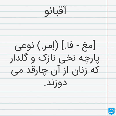 آقبانو. (اِ مرکب) قسمی جامه ٔ باریک پنبه ای منقش که زنان از آن پیراهن و چادرنماز کردندی.