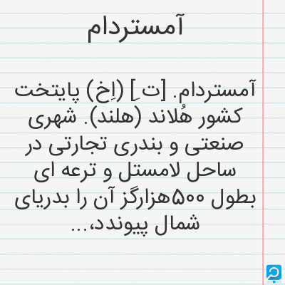 آمستردام در فرهنگ لغات ها (دهخدا،معین و ... ) + سایر منابع اطلاعاتی