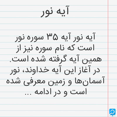 آیه نور آیه 35 سوره نور است که نام سوره نیز از همین آیه گرفته شده است. در آغاز این آیه خداوند، نور آسمانها و زمین معرفى شده است و در ادامه آیه در قالب تمثیلی چگونگی نور آسمان و زمین بودن خدا تشریح شده است.