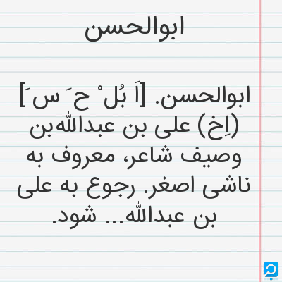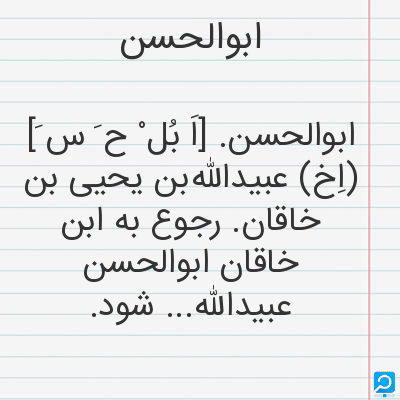 ابوالحسن. [اَ بُل ْ ح َ س َ] (اِخ) علی بن وصیف خشکناکه. رجوع به خشکناکه ابوالحسن علی... شود.