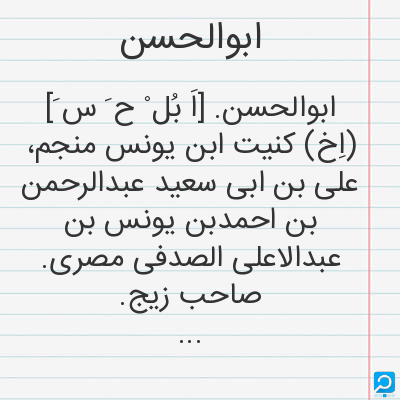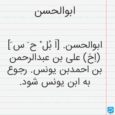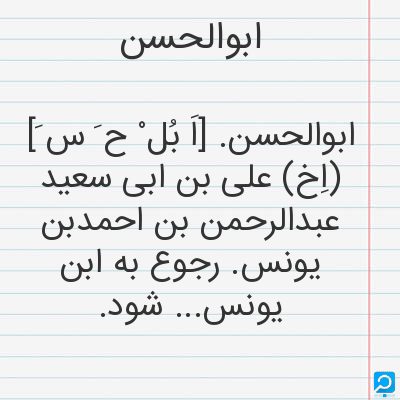 ابوالحسن. [اَ بُل ْ ح َ س َ] (اِخ) علی بن احمدبن یونس. رجوع به علی... شود.