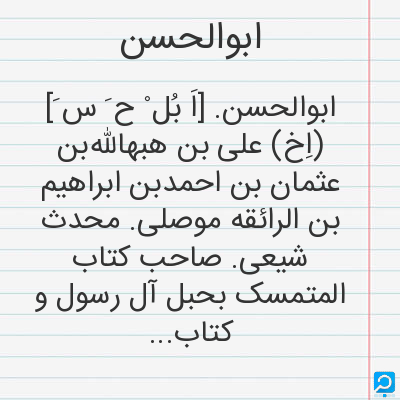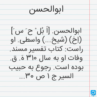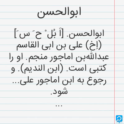 ابوالحسن. [اَ بُل ْ ح َ س َ] (اِخ) علی الناسخ. رجوع به علی... شود.