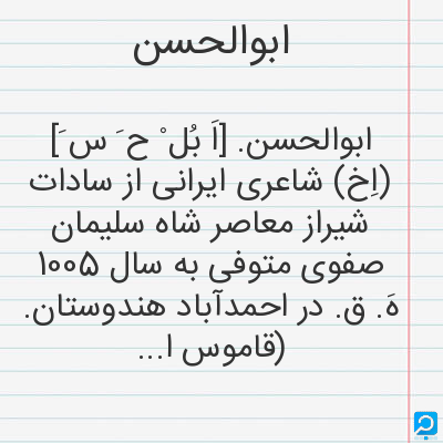ابوالحسن در فرهنگ لغات ها (دهخدا،معین و ... ) + سایر منابع اطلاعاتی