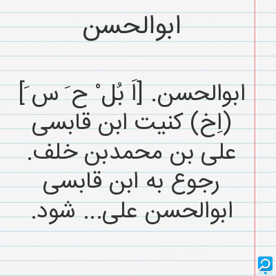 ابوالحسن. [اَ بُل ْ ح َ س َ] (اِخ) کنیت ابن قابسی علی بن محمدبن خلف. رجوع به ابن قابسی ابوالحسن علی... شود.