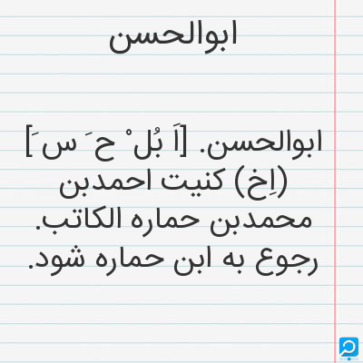 ابوالحسن. [اَ بُل ْ ح َ س َ] (اِخ) کنیت احمدبن محمدبن حماره الکاتب. رجوع به ابن حماره شود.