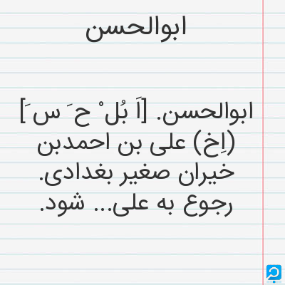 ابوالحسن. [اَ بُل ْ ح َ س َ] (اِخ) علی بن احمدبن خیران صغیر بغدادی. رجوع به علی... شود.