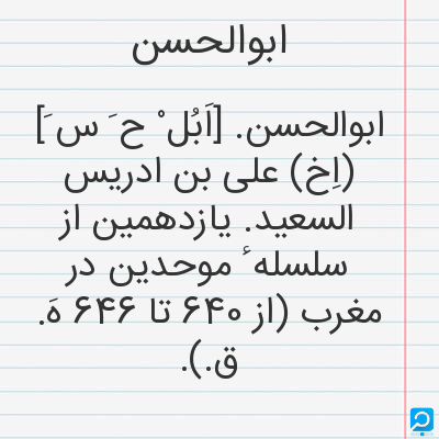 ابوالحسن. [اَبُل ْ ح َ س َ] (اِخ) علی بن ادریس السعید. یازدهمین از سلسله ٔ موحدین در مغرب (از 640 تا 646 هَ. ق.).