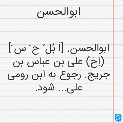 ابوالحسن. [اَ بُل ْ ح َ س َ] (اِخ) علی بن عباس بن جریج. رجوع به ابن رومی علی... شود.
