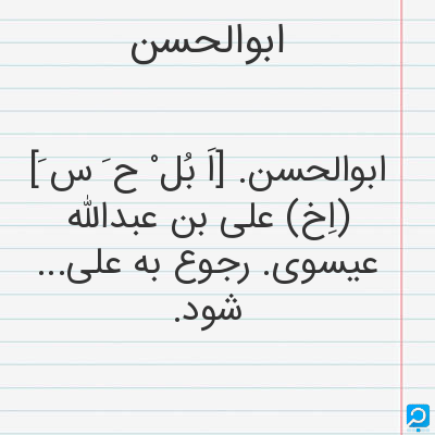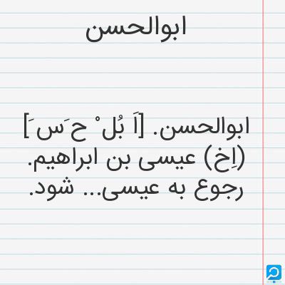 ابوالحسن. [اَ بُل ْ ح َس َ] (اِخ) عیسی بن ابراهیم. رجوع به عیسی... شود.