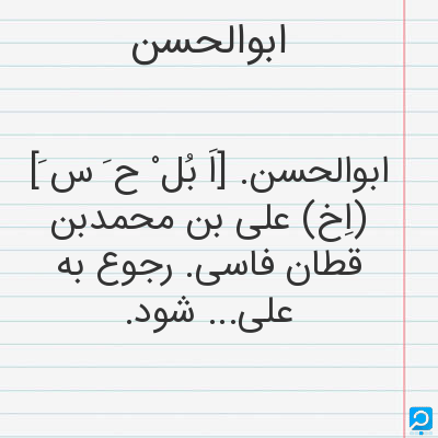 ابوالحسن. [اَ بُل ْ ح َس َ] (اِخ) علی بن احمد فسوی. رجوع به علی... شود.