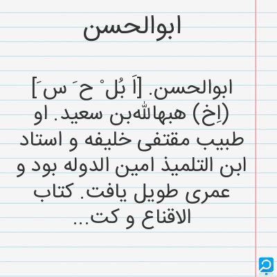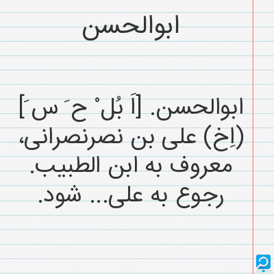 ابوالحسن. [اَ بُل ْ ح َ س َ] (اِخ) علی بن نصرنصرانی، معروف به ابن الطبیب. رجوع به علی... شود.