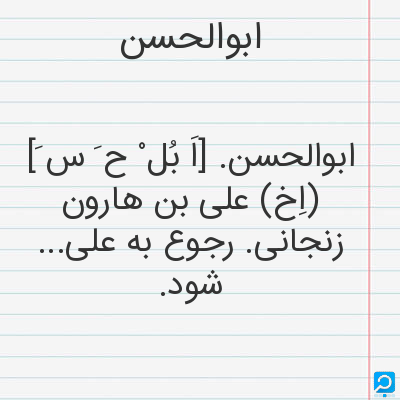 ابوالحسن. [اَ بُل ْ ح َ س َ] (اِخ) علی بن هارون زنجانی. رجوع به علی... شود.