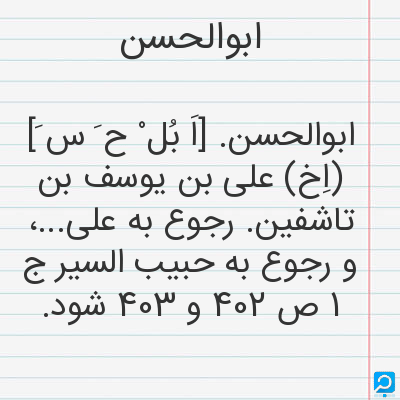 ابوالحسن. [اَ بُل ْ ح َ س َ] (اِخ) علی بن یوسف بن تاشفین. رجوع به علی...، و رجوع به حبیب السیر ج 1 ص 402 و 403 شود.