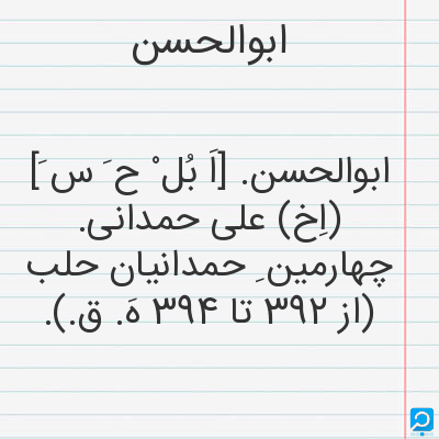 ابوالحسن. [اَ بُل ْ ح َ س َ] (اِخ) علی حمدانی. چهارمین ِ حمدانیان حلب (از 392 تا 394 هَ. ق.).