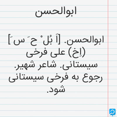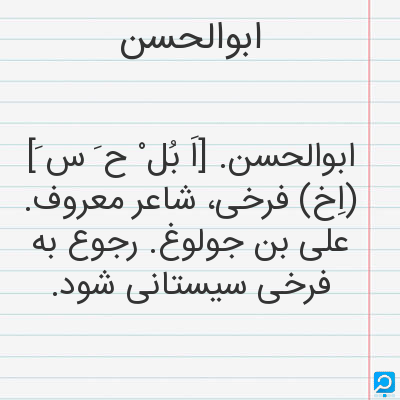 ابوالحسن. [اَ بُل ْ ح َ س َ] (اِخ) علی فرخی سیستانی. شاعر شهیر. رجوع به فرخی سیستانی شود.