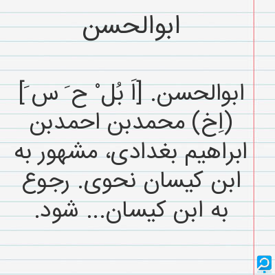 ابوالحسن. [اَ بُل ْ ح َ س َ] (اِخ) کنیت ابن کیسان محمدبن احمدبن ابراهیم نحوی. رجوع به ابن کیسان ابوالحسن محمدبن احمد... شود.