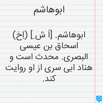 ابوهاشم. [اَ ش ِ] (اِخ) اسحاق بن عیسی البصری. محدث است و هناد ابی سری از او روایت کند.