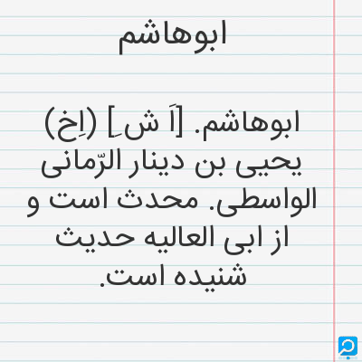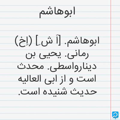 ابوهاشم. [اَ ش ِ] (اِخ) رمانی. یحیی بن دینارواسطی. محدث است و از ابی العالیه حدیث شنیده است.