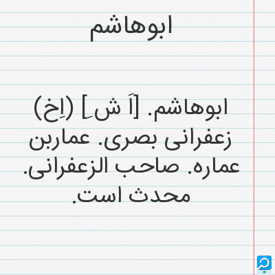 ابوهاشم. [اَ ش ِ] (اِخ) زعفرانی بصری. عماربن عماره. صاحب الزعفرانی. محدث است.