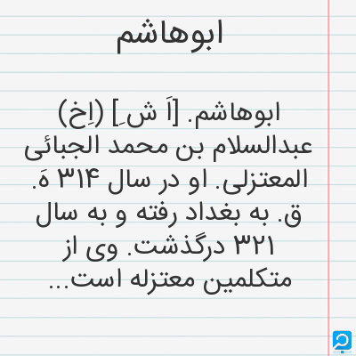 ابوهاشم. [اَ ش ِ] (اِخ) عبدالسلام بن محمد الجبائی المعتزلی. او در سال 314 هَ. ق. به بغداد رفته و به سال 321 درگذشت. وی از متکلمین معتزله است. او ذکی نیکودریافت، ثاقب الفطنه سخن آفرین و مسلّط بر سخن بود و از اوست: کتاب الجامع الکبیر. کتاب الابواب الکبیر. کتاب الابواب الصغیر. کتاب الجامع الصغیر. کتاب ألانسان. کتاب العوض. کتاب المسائل العسکریات. کتاب النقض علی ارسطالیس فی الکون والفساد. کتاب الطبایع و النقض علی القائلین بها. کتاب الأجتهاد. (ابن الندیم). و کنیت پدر او ابوعلی بوده است و در بعض آثار نسب ابوهاشم راچنین ذکر کرده اند: عبدالسلام بن علی بن محمد [شاید ابی علی محمد] بن عبدالوهاب جبائی. و ابن خلکان گوید: مولد او به سال 247 بود و او در بغداد میزیست و هم بدانجا درگذشت. و در مقابر البستان از جانب شرقی جسد او بخاک سپردند و پیروان او را بهشمیّه نامند. رجوع به بهشمیه شود. و ابن هیثم حکیم را کتابی است در ردّ بعض اقوال او. و قفطی در تاریخ الحکماء در ذیل کتاب السماء و العالم ارسطو آرد که: و لأبی هاشم الجبائی علیه کلام و ردود سماه التصفّح. بطل فیه قواعد ارسطوطالیس و اخذه بالفاظ زعزع بها قواعدها التی اسسها و بنی الکتاب علیها. و او از مردم جُبّاء روستائی به خوزستان بود و بقول حموی در کتاب المشترک جباء کوره وبلده ای است صاحب قری و عمارات و سمعانی گوید: قریه ای است از قراء بصره و جماعتی از علماء بدانجا منسوبند. رجوع به ابن خلکان ج 1 ص 317 و نیز رجوع به ابوعلی جبائی و روضات الجنات ذیل ترجمه ٔ ابوعلی جبائی شود.