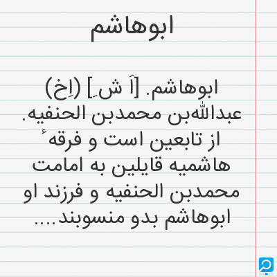 ابوهاشم. [اَ ش ِ] (اِخ) عبداﷲبن محمدبن الحنفیه. از تابعین است و فرقه ٔ هاشمیه قایلین به امامت محمدبن الحنفیه و فرزند او ابوهاشم بدو منسوبند. ابن اثیر در کامل در حوادث سال 100 هَ. ق. گوید: ابوهاشم عبداﷲبن محمدبن الحنفیه بشام نزد سلیمان بن عبدالملک رفت و در آنجا درک صحبت محمدبن علی کرد و سپس نزد سلیمان شد و سلیمان او را اکرام و قضاء حوائج وی کرد و برعلم و فصاحت او حسد برد و بترسید و کس گماشت تا او را در شیر زهر دادند و ابوهاشم آنگاه که احساس شر کرد بحمیمه از ارض شراه شد و محمد بدانجا بود وبر او فرود آمد و گفت این امر به اولاد او رسد و ابوهاشم آنگاه که شیعیان وی از مردم خراسان و عراق با وی تردد داشتند بدیشان گفته بود که امر امامت در اولادمحمدبن علی خواهد بود و وصیت کرده بود که پس از وی بدو رجوع کنند چون ابوهاشم درگذشت نزد محمد رفتند و با وی بیعت کردند. رجوع به کیسانیّه شود. و گویند آنگاه که ابوهاشم بحمیمه نزد محمدبن علی بن عبداﷲبن عباس رفت صحیفه ٔ علویه را که آنرا ( (صحیفه ٔ زرد)) گفتندی و او از پدر و پدر وی از والد بزرگوار خویش علی بن ابیطالب میراث داشت و حوادث عالم تا روز قیامت در آن نوشته بود بمحمدبن علی بن عباس تسلیم کرد و در همان روز وفات یافت. و صاحب حبیب السیر سال وفات وی را 98 هَ. ق. گفته است. رجوع به حبط 1 ص 257 و 258 شود.