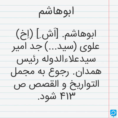 ابوهاشم. [اَ ش ِ] (اِخ) پدر فخرالدوله رئیس همدان بزمان طغرل بن محمد از سال 525 هَ. ق. رجوع به فخرالدولهبن ابی هاشم... شود.
